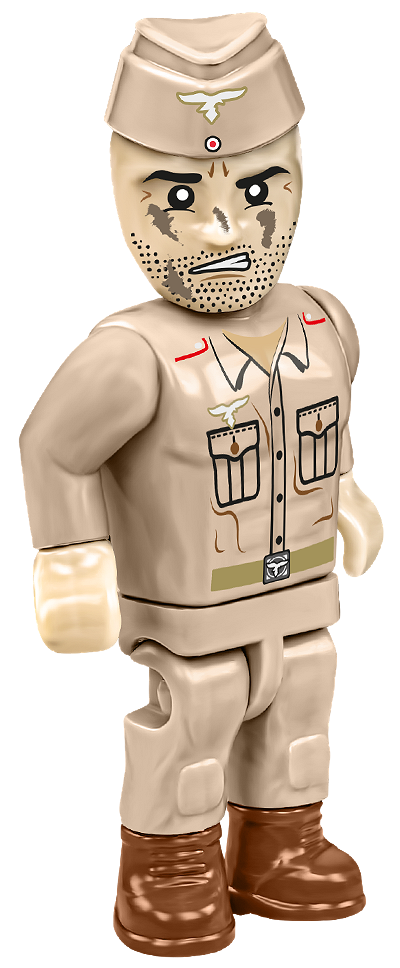 Luftwaffe artilleryman figure – The set includes a figure of a soldier dressed in a classic sand-colored uniform. The artilleryman figure is equipped with three artillery shells faithfully reproduced in brick scale. This soldier, wearing a characteristic forage cap, looks like a front-line veteran and an experienced soldier.