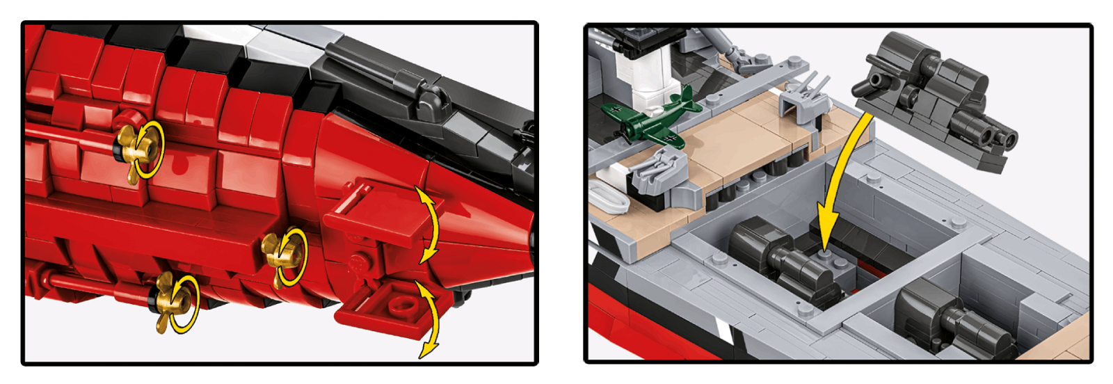 Realistic functionality – movable elements, such as armament and propellers, and removable parts of the propulsion system enhance the model's realism and make it not only a display piece, but also an interactive structure.