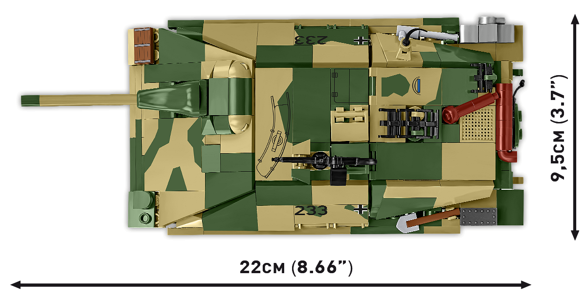 • 1:28 scale – the proportions of the model faithfully reproduce the shape and character of the Hetzer. The scale used allows for the use of a large number of structural details while maintaining full functionality. 1:28 is the most detailed scale for HISTORICAL COLLECTION WWII sets. In this scale, COBI releases the best and most refined sets for the most demanding customers.