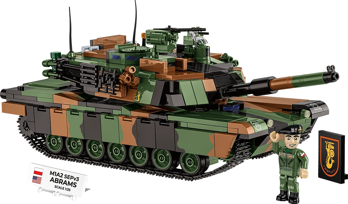 The M1A2 Abrams tank in the colors of the 1st Warsaw Armored Brigade! Build the most modern tank in service with the Polish Army!
