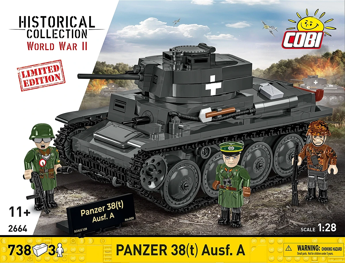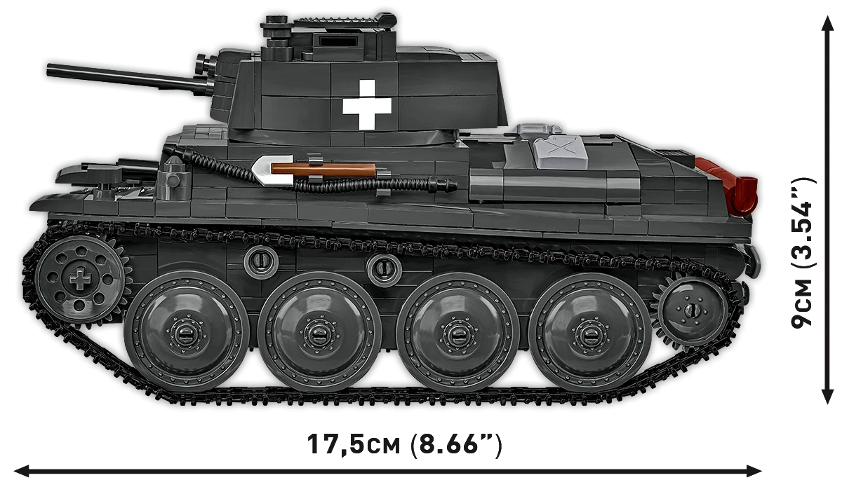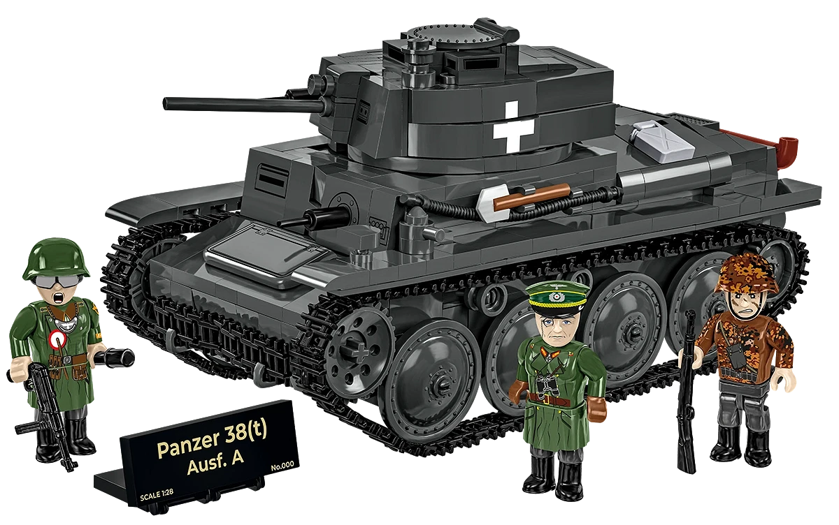 After the annexation of Czechoslovakia, the Germans took over the LT vz. 38 project and began production of the Panzerkampfwagen 38(t) at the BMM plants. The Ausf. A version from 1939, reproduced in the COBI model, participated in the September and French campaigns. Unique design features included: a 3.7 cm caliber gun, which was powerful for a light tank, and riveted armor. This armament was superior to the German light tank, and the front armor thickness... The 25 mm armor was only slightly weaker than the Panzerkampfwagen III and Panzerkampfwagen IV.