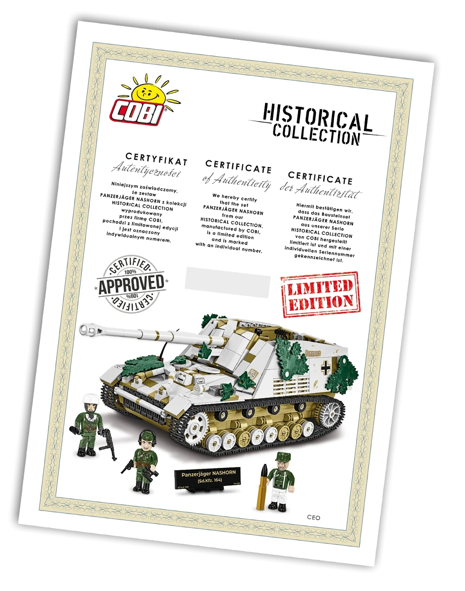 • Collectible extras: a black, engraved plate with the set name, scale and individual Limited Edition number. The same number also appears on the paper certificate of authenticity, hand-signed by COBI's CEO.